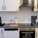 Hay una cocina que cuenta con lavaplatos y un horno. El Großzügiges Familien-Apartment im Herzen Lübbens está a 250 m de la parada de autobús más cercana, Logenstrasse.